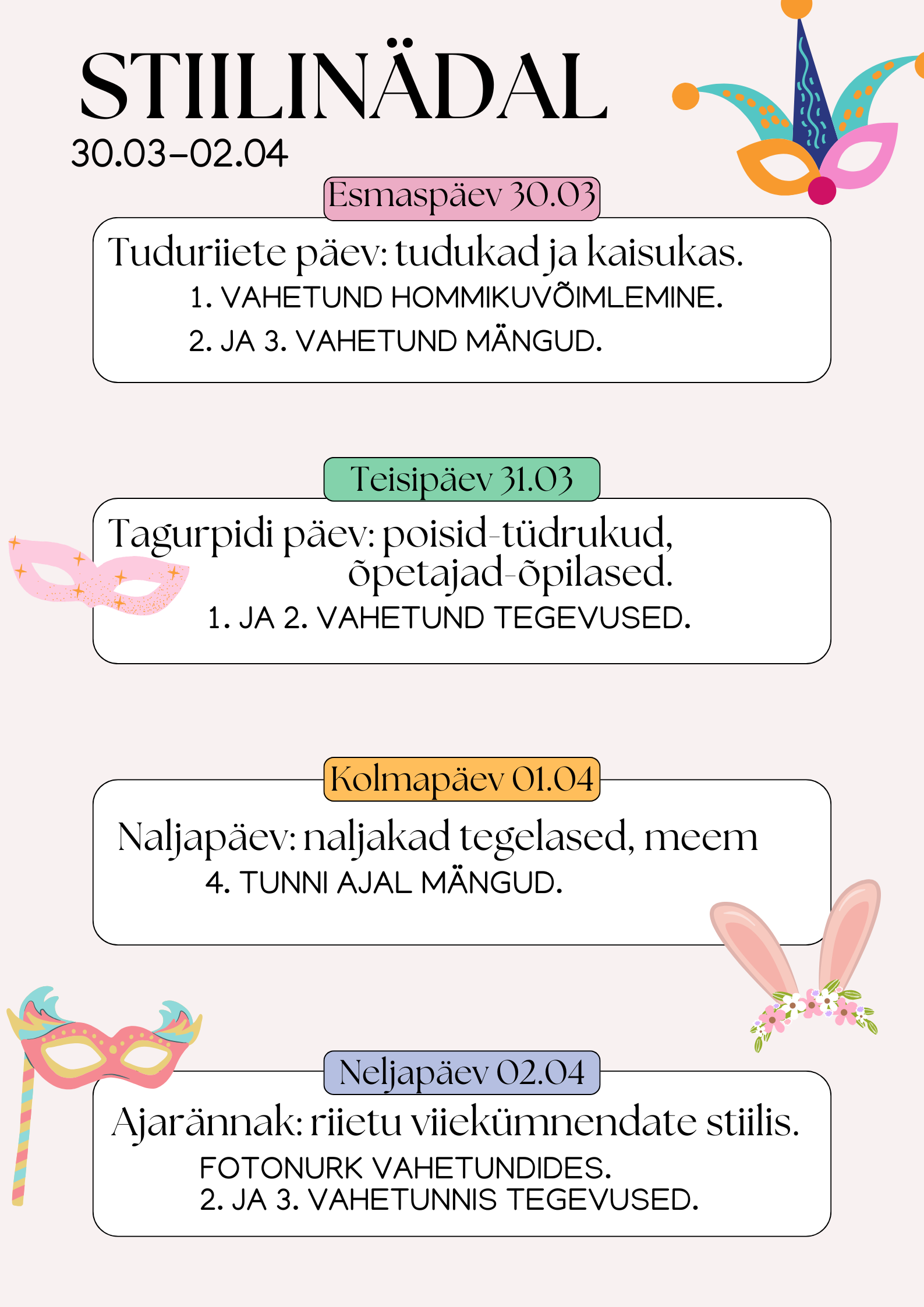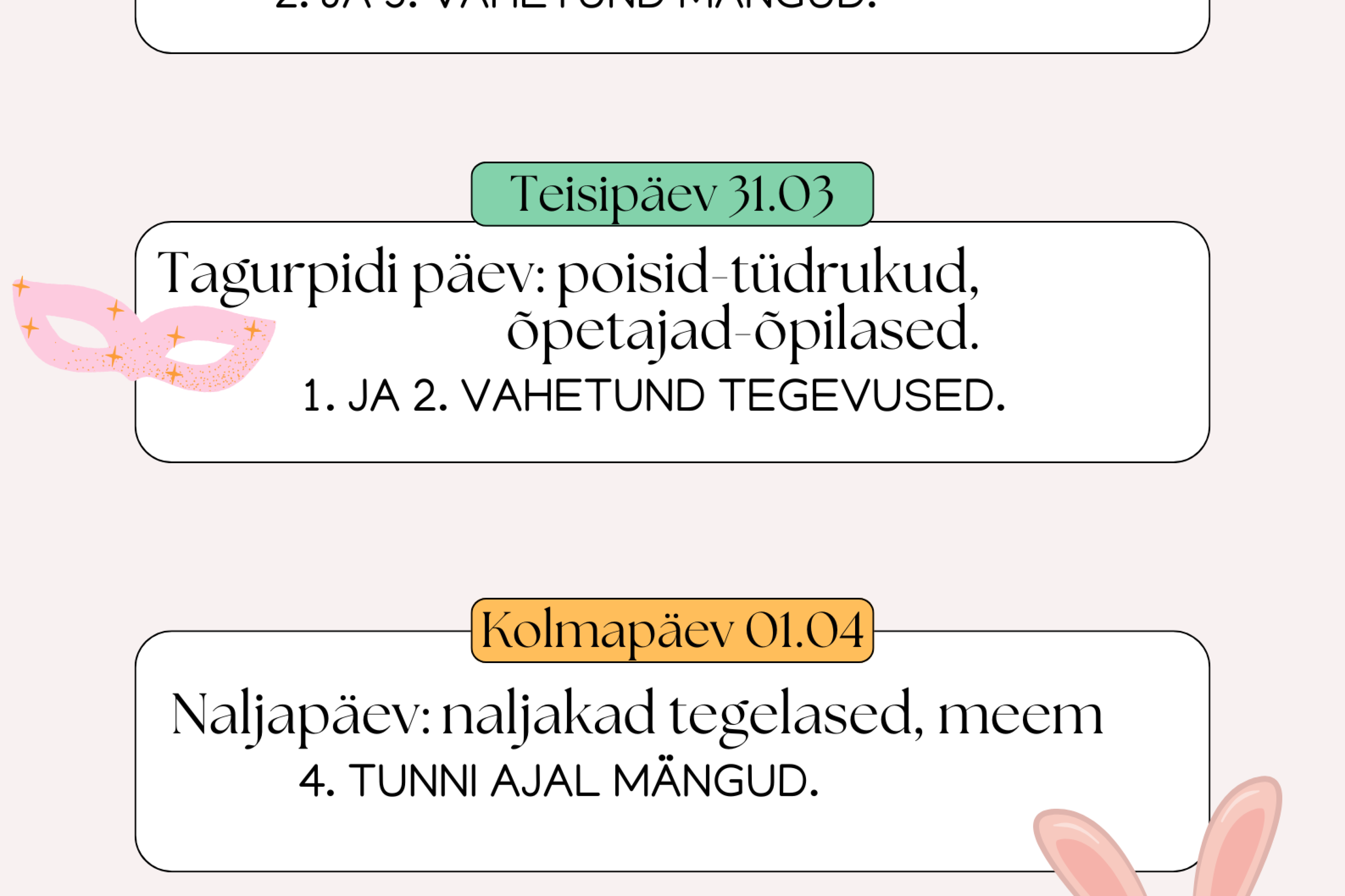 Oluline Otsime eripedagoogi Loomise kuupäev 23.09.2025 Autor Reelika Berg Kutse Loomise kuupäev 16.02.2026 Autor Reelika Berg Vastlatrall Loomise kuupäev 04.02.2026 Autor Reelika Berg Playback 2026 Loomise kuupäev 13.01.2026 Autor Reelika Berg Vaata rohkem