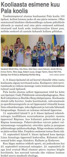 Pala kooli tegemisi 2022/2023 Allikas: Peipsiääre Teataja Ava foto Avaldatud 06.05.2022. Viimati muudetud 08.11.2023.