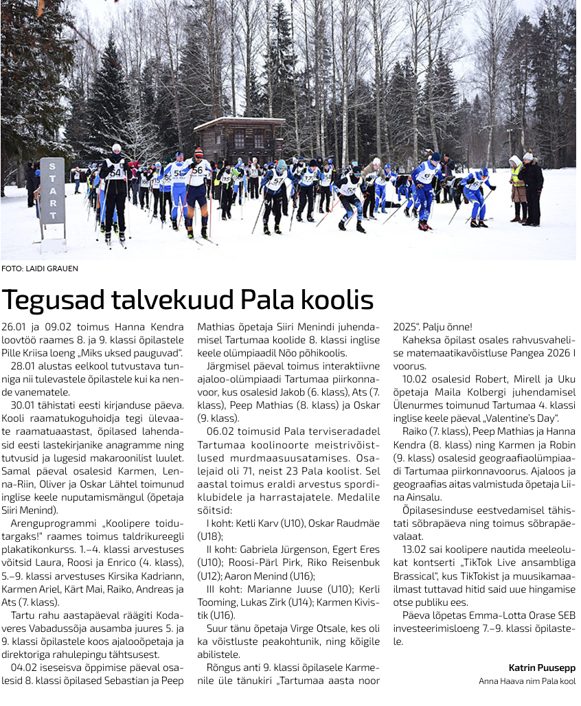 Meie lood Jaanuari tegemised 2026.a Loomise kuupäev 02.02.2026 Autor Reelika Berg Meie lood Novembri tegemised Loomise kuupäev 18.12.2025 Autor Reelika Berg Meie lood Oktoobri tegemisi 2025.a. Loomise kuupäev 28.11.2025 Autor Reelika Berg Meie lood Septembri tegemised Loomise kuupäev 17.11.2025 Autor Reelika Berg Vaata rohkem